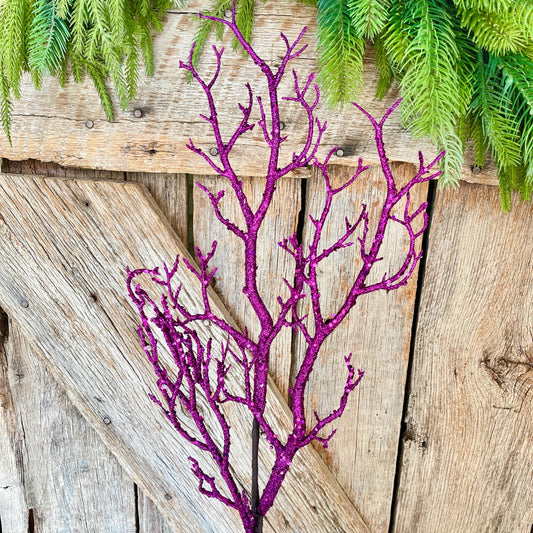 30" Purple Glitter Twig Halloween Spray, Purple Spray, Halloween Floral Stem