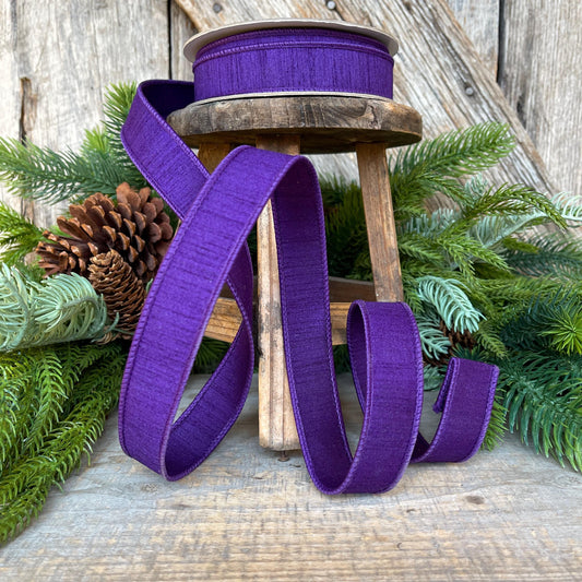 1” Purple Amethyst Dupion Ribbon, Farrisilk ribbon, wired ribbon