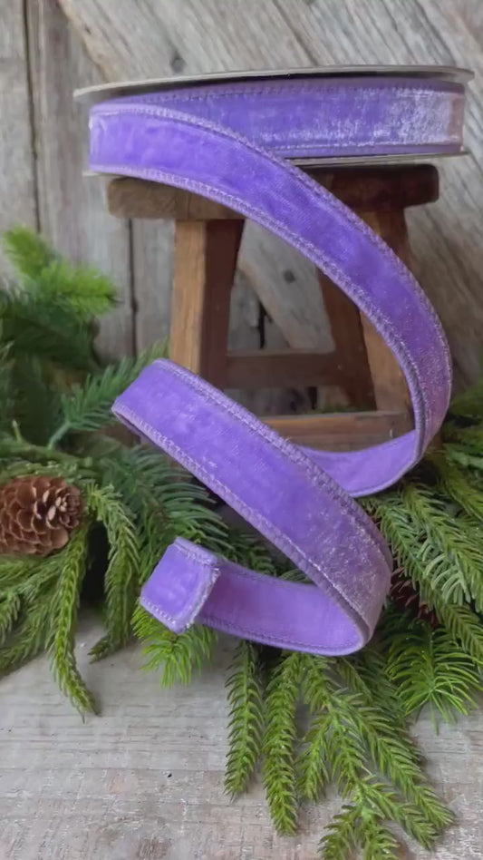 1" Lilac Purple Velvet Ribbon, Farrisilk Wired Velvet Ribbon, Christmas Velvet Ribbon