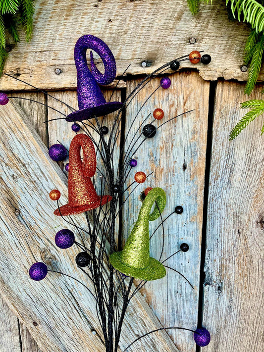 31" Witch Hat Glittered Spray, Halloween Spray, Halloween Floral Spray