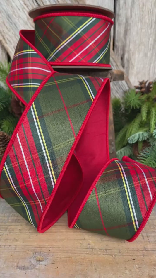2.5" Christmas Plaid Ribbon, Green Plaid Ribbon, Traditional Christmas Ribbon