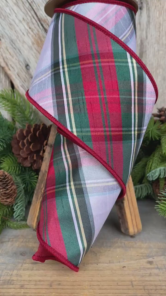4" Traditional CHristmas Plaid, Wired Ribbon, Chirstmas Plaid RIbbon