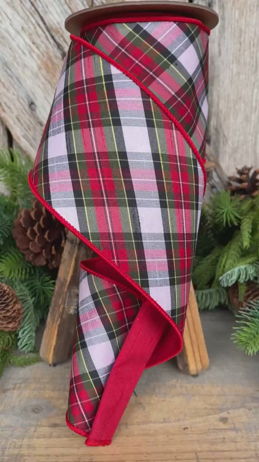 4" Kitschy Plaid Ribbon, Farrisilk Ribbon, Christmas Plaid Ribbon