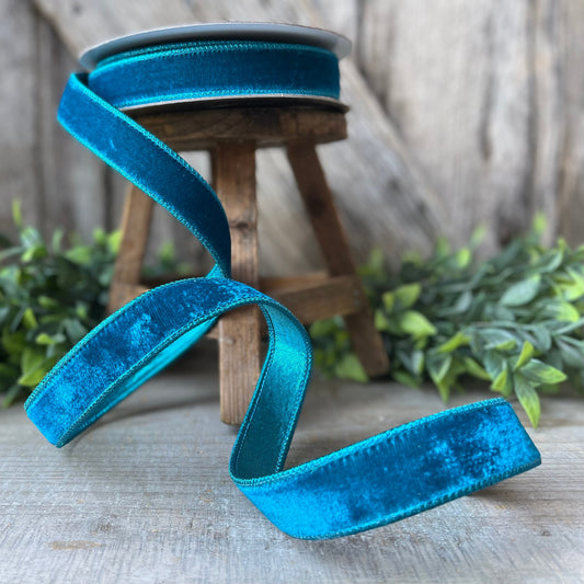 1" Turquoise Velvet Luster RIbbon, Farrisilk Ribbon, Velvet RIbbon