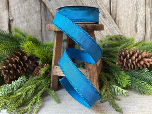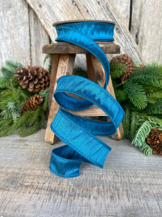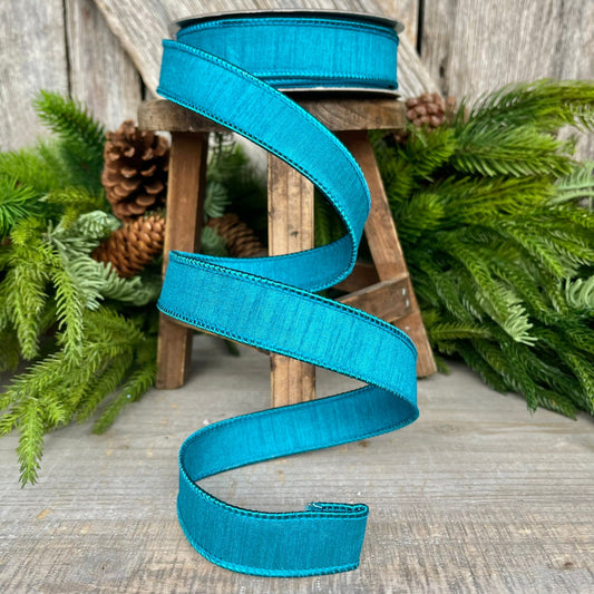 1" Turquoise Dupioni Ribbon, wired ribbon, Christmas Ribbon