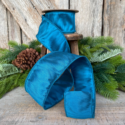 2.5" Turquoise Dupioni Ribbon, wired ribbon, Christmas Ribbon