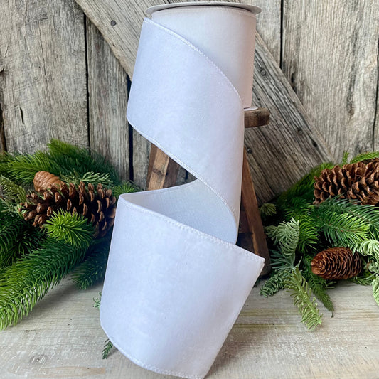 4" White Velvet Ribbon, Farrisilk Ribbon, Wired Ribbon