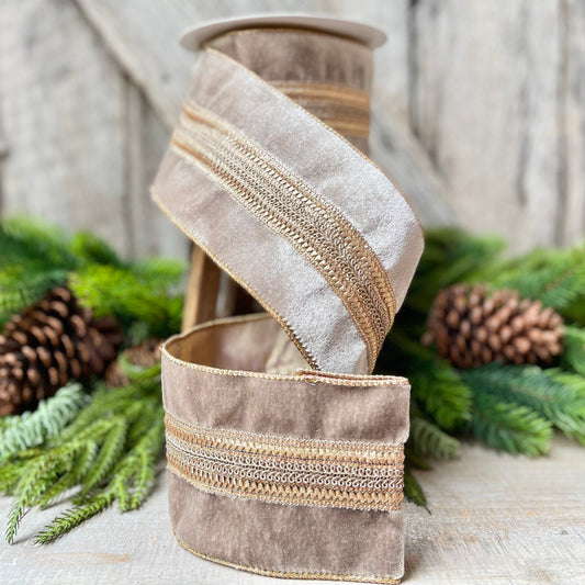 4" Grey Taupe Velvet Ribbon, 5 Yards, Christmas Tree Ribbon