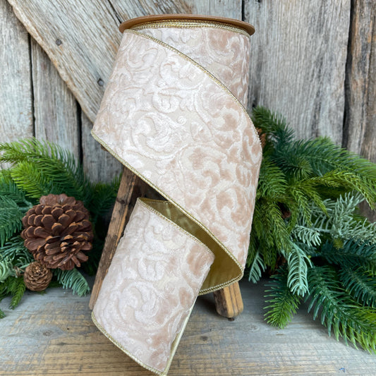 Ivory Velvet Ribbon, Christmas Ribbon, 4" x 10yds