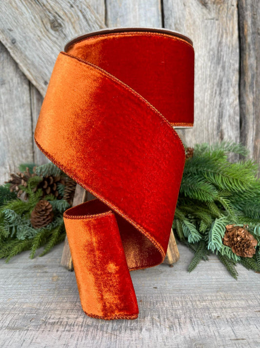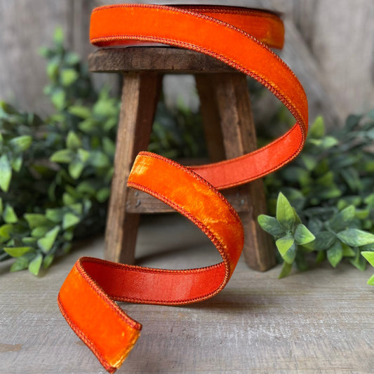 Wired Orange Velvet Ribbon: Fall Halloween Christmas Decor, 1" x 10 Yards