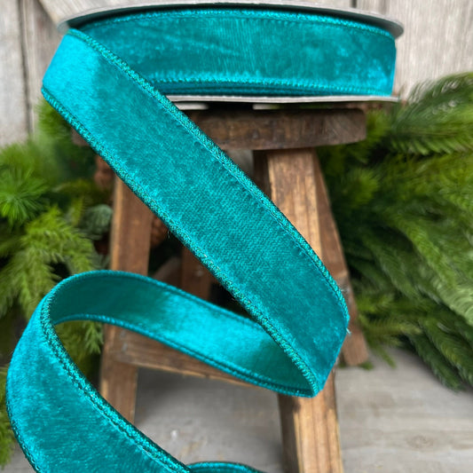 1" Teal Velvet Luster RIbbon, Farrisilk Ribbon, Velvet RIbbon