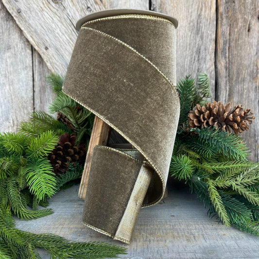 2.5” Bronze Wired Velvet Ribbon, Wired ribbon, Woodsy ribbon