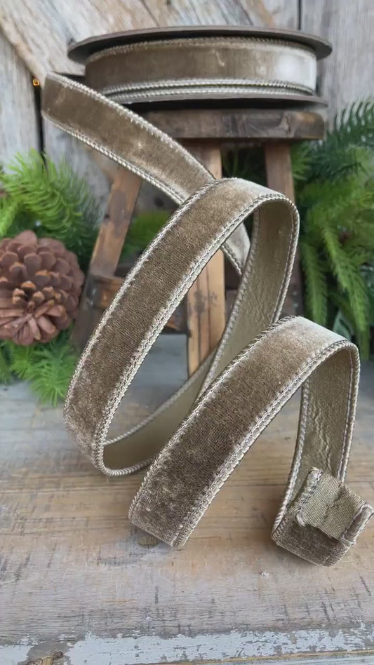 1” Mink Velvet Ribbon, Mocha Velvet ribbon, Christmas Ribbon