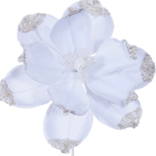 21" White Velvet Magnolia, Christmas Magnolia, Faux Magnolia Stem