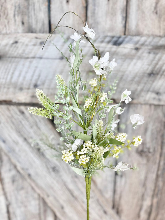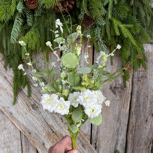 20” White Rose Wildflower Bush – Artificial Spring Floral Spray, 65653-CR