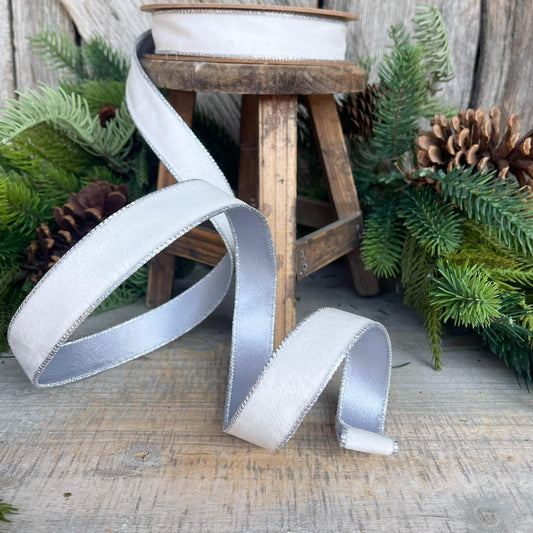 1" White Velvet Ribbon, White Velvet Ribbon, Wired Ribbon