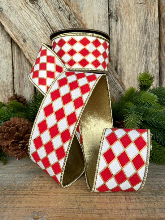 2.5" Red and White Harlequin Ribbon, Christmas Ribbon