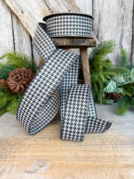 1.5" Black and White Houndstooth ribbon, Christmas Ribbon, Gift Wrap Ribbon