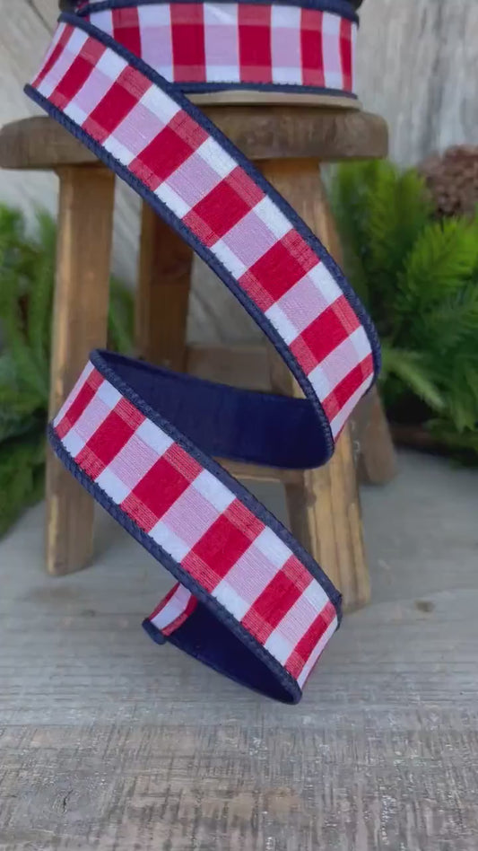 1" Patriotic Ribbon, D Stevens Ribbon, Red white blue check ribbon
