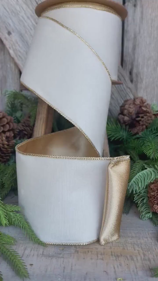 4" Ivory Velvet Ribbon, Ivory Ribbon, Cream White Ribbon