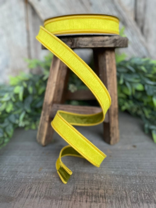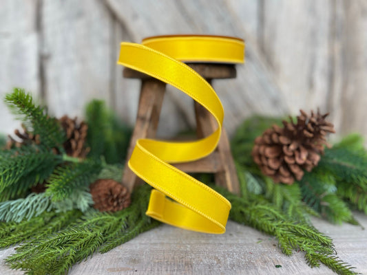 1" Golden Yellow Ribbon, Wired Velvet Ribbon, Honey Golden Velvet