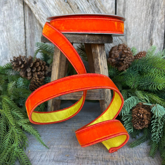 1" Orange Yellow Velvet RIbbon, Farrisilk Ribbon, Wired Ribbon