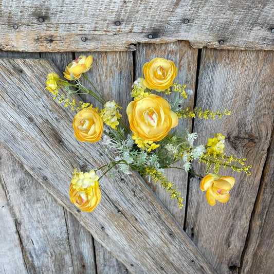 21.5" Yellow Ranunculus Florals Bush, Artifical Floral Bush, Yellow Floral Bush
