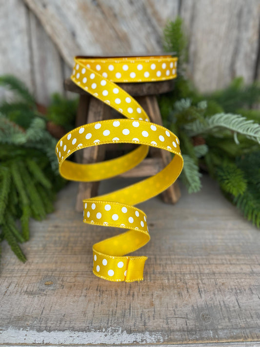 1"Yellow Mini Dots Ribbon, Farrisilk Ribbon, Yellow Polka Dot RIbbon