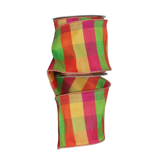 4" Pink Yellow Green Plaid Ribbon, Christmas Plaid Ribbon