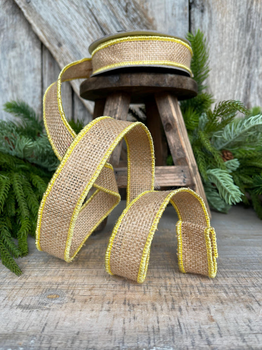 1" Yellow Burlap Accent Ribbon, Farrisilk Ribbon, Wired Ribbon