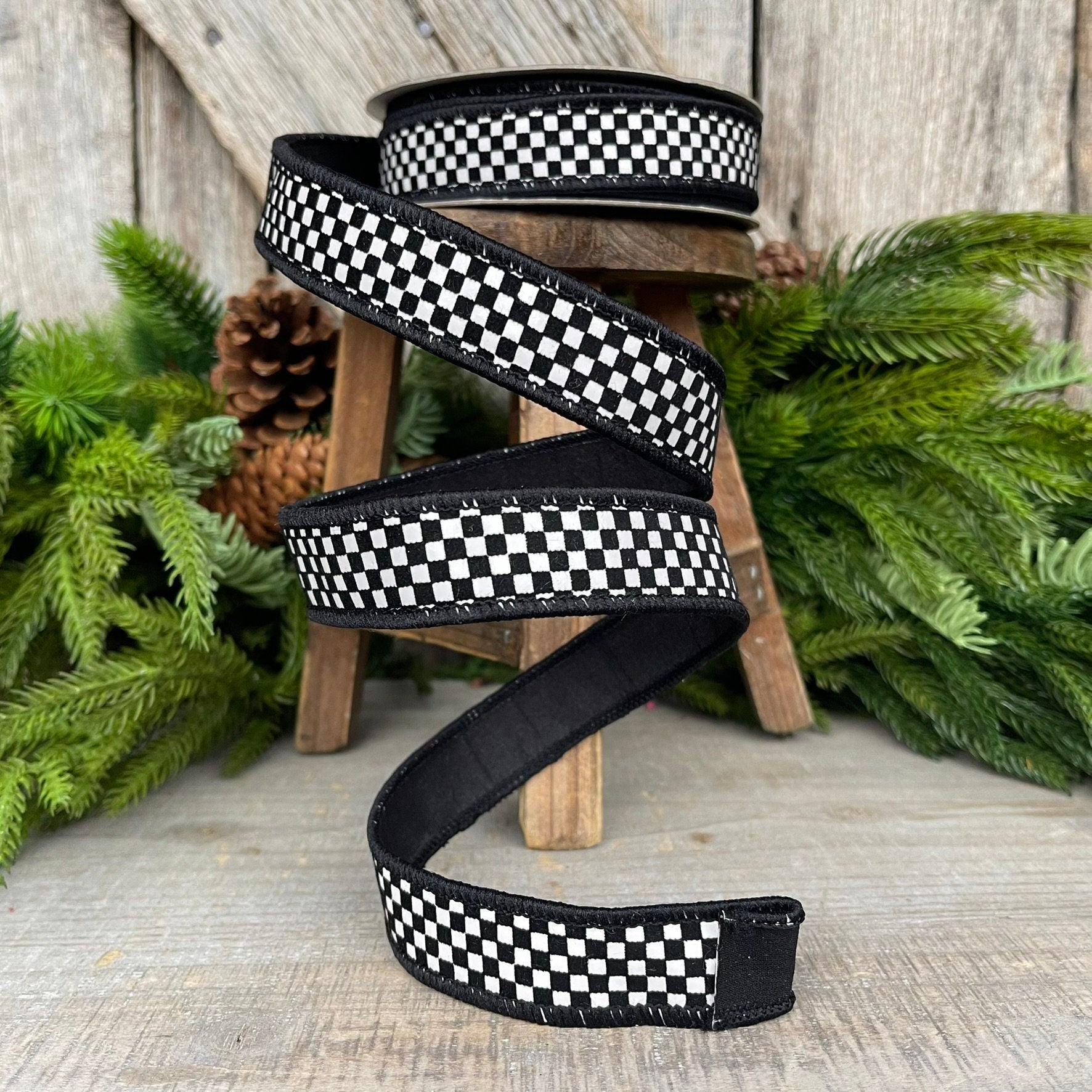 Black & White Checkered Wired Ribbon - Farrisilk Designer Ribbon, 1 Inch